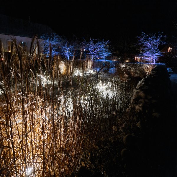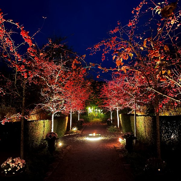 Tip! At styrke den naturlige farve ved dit træ eller busk med samme farve på lyset fra lampen bliver meget effektivt. Et rigtig grønt, knitrende løv er først stærkt. om aftenen med grønt lys og for en rød japansk ahorn sættes lyset med en kvart til en orange/rød farve. Hvorfor ikke sætte en turkis/blå; farve til et sprødt funklende vintertræ. Det fine er, at du selv kan eksperimentere, indtil du får det bedste resultat og også følge årstidernes skiften.