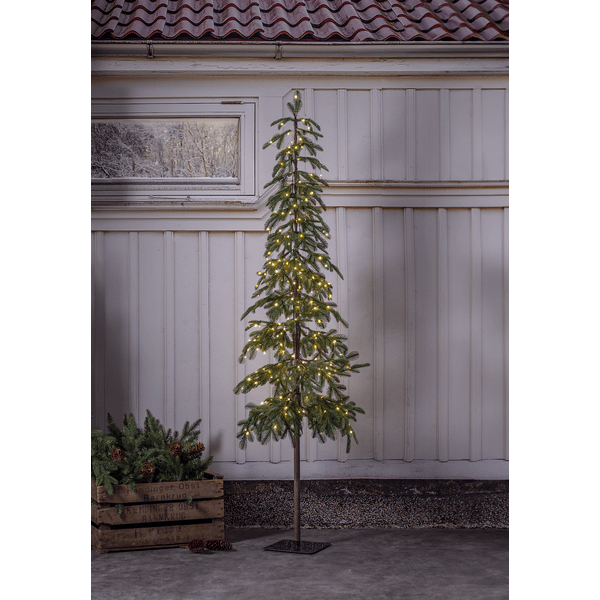 Grantorp er et fyrretræ med et naturtro udseende, der er cirka 180 cm højt og 40 cm bredt, lavet af PE. Med 240 varmt hvide lyspunkter, hvoraf nogle blinker en smule, lyser den smukt op både indendørs og udendørs. Basen er firkantet, og den leveres med 4 jordpløkker, som du kan bruge til at forankre træet, hvis du bruger det udendørs. Leveres med 5m grønt tilslutningskabel og transformer.