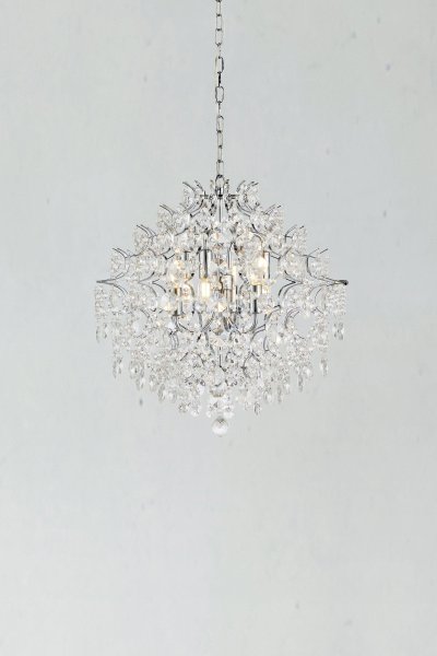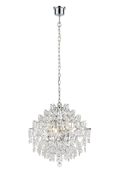 Denne storslåede krystallysekrone fra Rosendal-serien forvandler din stue til et glitrende festlokale. Med sine smukke maskinskårne prismer og en forkromet metalramme giver den en eksklusiv følelse. Kæden på 1,5 meter og loftspanden medfølger for nem ophængning. Pærer medfølger ikke.